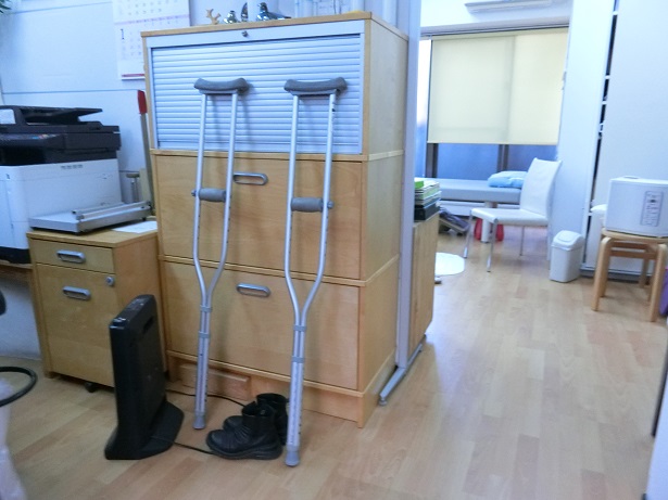 松葉杖は負ければ歩けないほどではないがあった方が良いので使っていると言われるが、松葉杖を使わなくてよくなった状態で帰っていただけるように取り組んだ