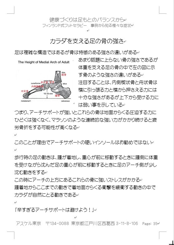 しかし、インソールの作り方はいろいろ異なった方法がるようだが、足の状態を良くして利用者の本来の状態に戻して整えた足の状態をサポートするものが最適だと思う