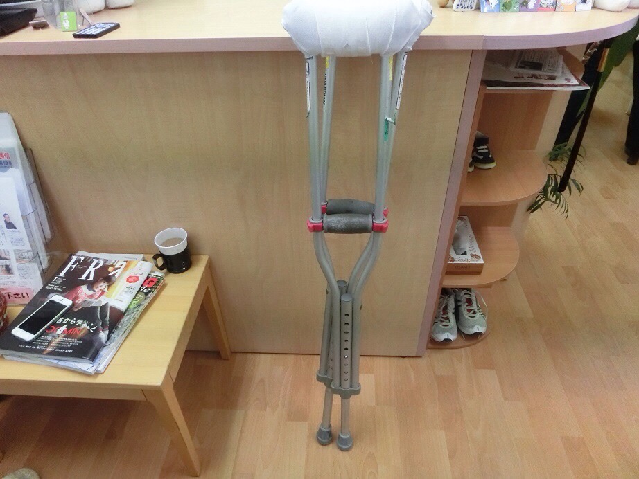 右足は軽傷のようだが左足は体重を乗せることも出来ず踝周辺に湿布と包帯でテーピング効果を持たせるためか厚く包帯が巻かれ靴に脚がは要らないほど大きくなっているために左足だけクロックスを履いての来店