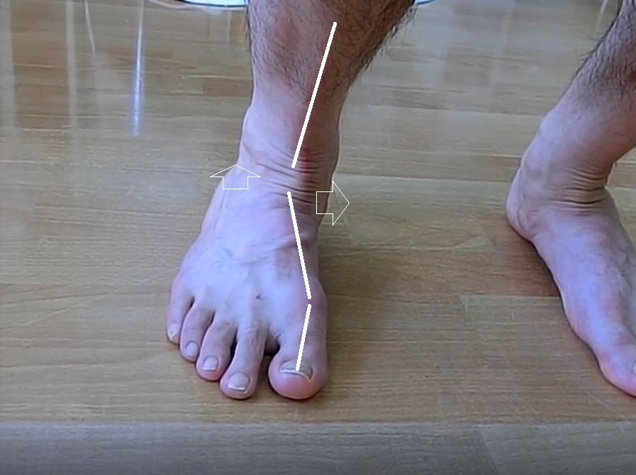 実際の足の動をビデオで紹介するが、ビデオの前半は少し母趾球を意識しているが足首に引いたピンクの線のあたりを見ると大きく沈み込む動きが分かる
