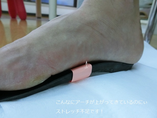 足を診ると、昨年夏より足のアーチが高くなっていたが、ストレッチを必要とする筋肉が固くなっていた