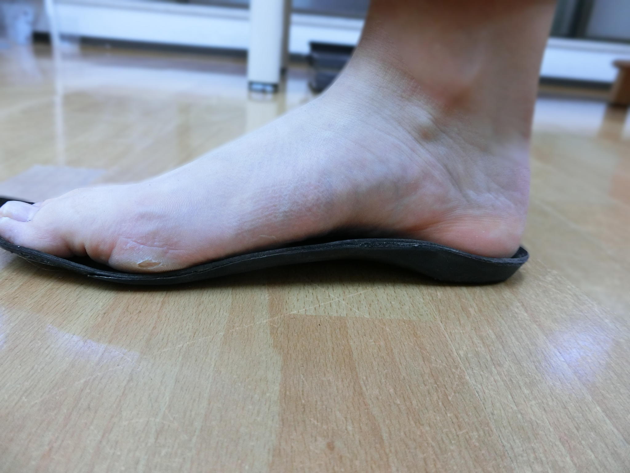 こまで使っていたインソールに乗ってみると写真のようにアーチのサポートから随分高い位置にアーチが来ていた