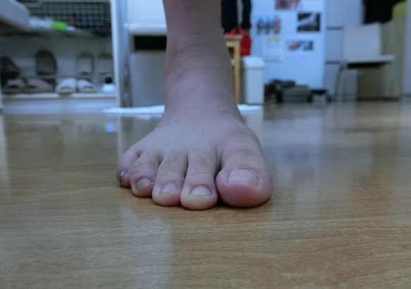 つま先が白くなるくらい体重がつま先に乗って足底に大きな負担をかけているようだった