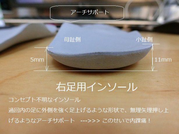 まずは、しばらく使って良ければ表面をインソール表装素材で包み完了とすると言われたが、それを使ってみるとくるぶしの内側が痛くなる