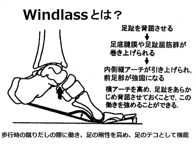 一般に紹介されているウインドラスの動き機能は足のアーチを引き上げて足を強くしつて安定した歩きができるようにするとされている