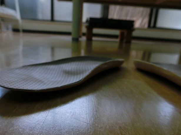 病院で作ったインソールも見せていただいたが、どのように見てどう評価してよいか分からないが、触ってみるとアーチのサポートが固く足の動きが制限されているように思えた