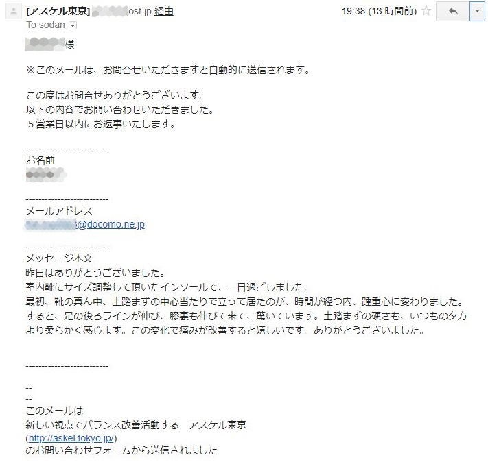 経過報告のメールが翌日届く(メールをクリックすると拡大表示ができる)