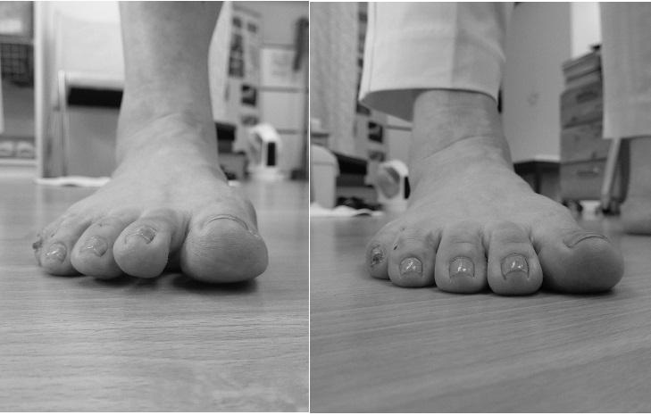 足もとのバランスが良くなってくると足の筋肉に柔軟性が戻り始め自然に浮き趾が戻どってきて趾先が床に着くようになった