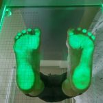 扁平の強かった足裏がアーチの機能が変わるとべたっとついた足跡が少しアーチの上がった足裏(床接地面積が少し小さくなる)のプリントに変わる
