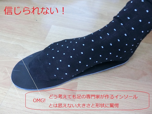 足より2センチも大きいインソールで、これを入れて履く靴はもちろん足より2センチも大きい