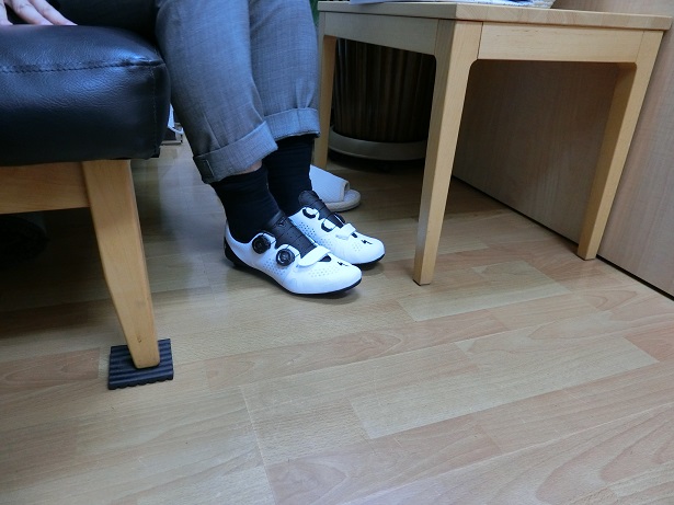 それから2ヶ月、「足元のバランスが良くなってきた気がします」と報告をいただいたが、それから2ヶ月後に最近はストレッチの仕方も何とかうまくできるようなって股関節周辺から太ももにかけて筋肉の張りを感じるようになり足のアーチが少し高くなっている感じがしますと報告に来られ、改善された足に合わせた自転車用のスパイクにインソールを作成された