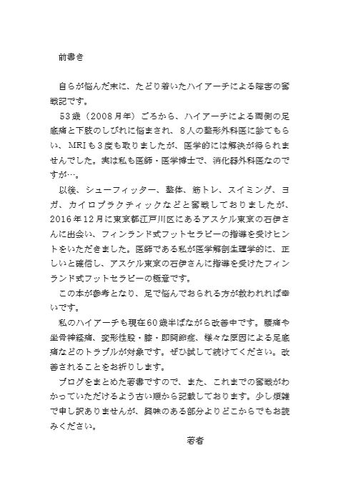 題名は、『足の痛みを自分で治した外科医師の極意!』です