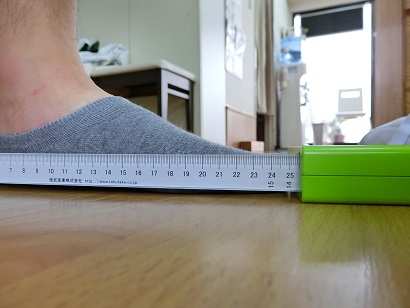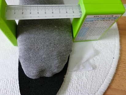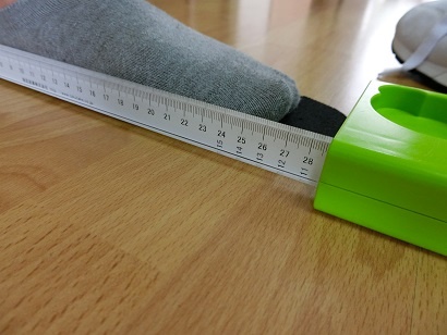 幅広に足なので大きめの靴を履かなぇれば足が痛いので、少し大きめの靴を履いていると言われるので実際に足を測ってみた |