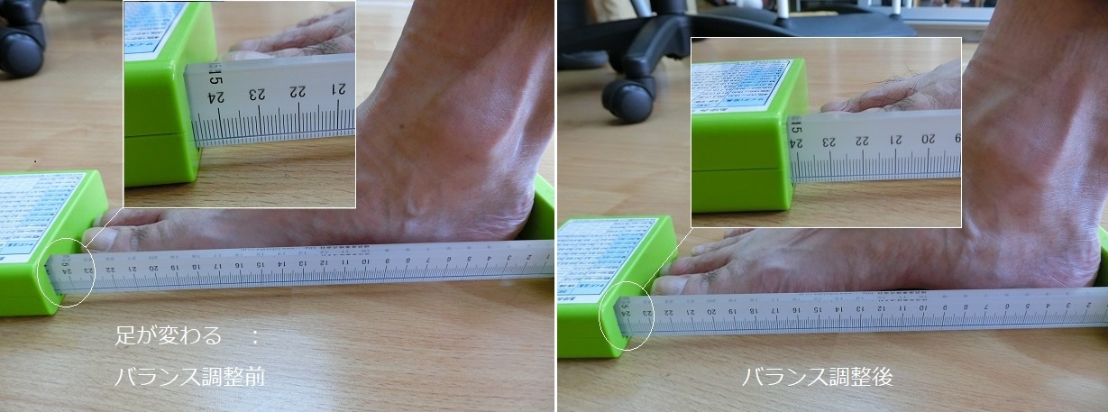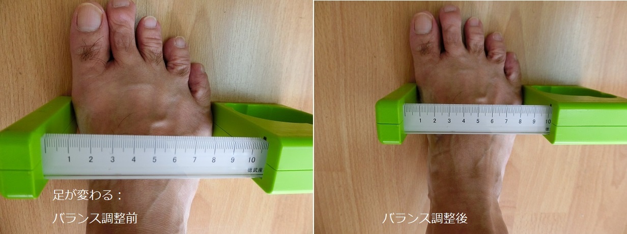 バランスを整える前の足の幅は、10.5cmであったが、バランスを整えなおすと10.2cmになっていた