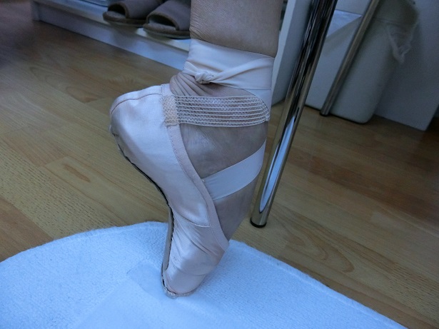作成したインソールをトウシューズに挿入して実際にバランスを試してみた