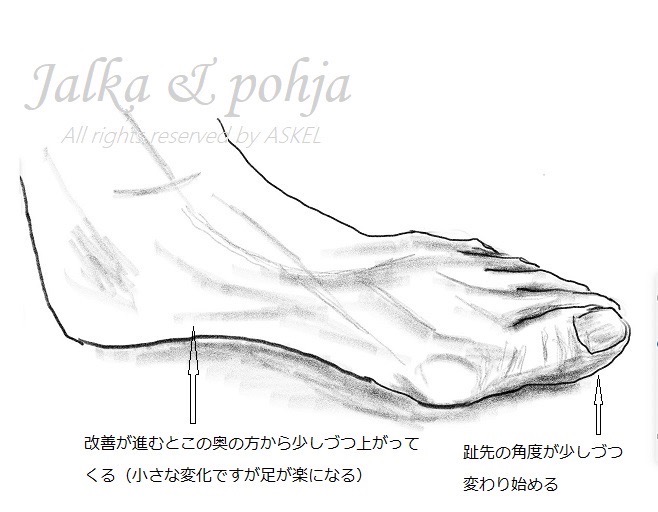 ここが上がると踵のバランスが良くなりつま先にかかる体重の負荷が減少してつま先の負担がかわり趾が動きやすくなる