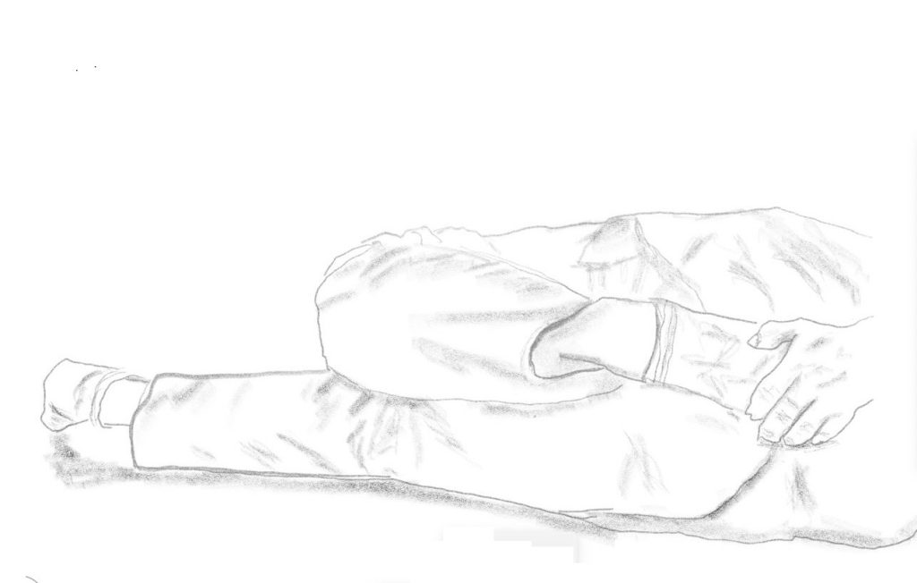 床に横になり安全なところで無理をせず15秒くらい(痛みが出そうになったらやめて下さい)太腿の前側の筋肉をストレッチしよう