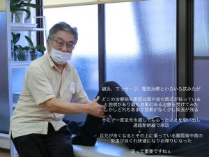 関節の動きが痛みを引き起こす動きになっているだけでその動きが変わると痛みの出ない動きで足元から体全体が楽になるようだ