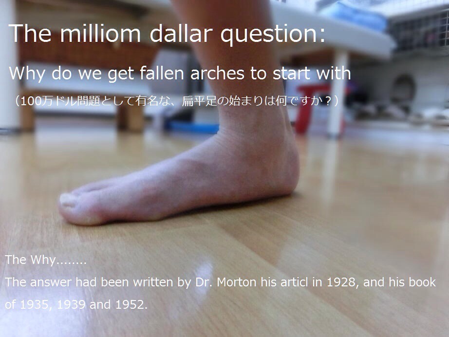 この研究は、アメリカの整形外科医(医学博士) Dr. Dudley J. Mortonが長年の研究の成果を元に足のアーチが沈んでしまう原因を整理してまとめた研究報告やその理論を、1928年、1935年、1939年と1952年にかけて発表された