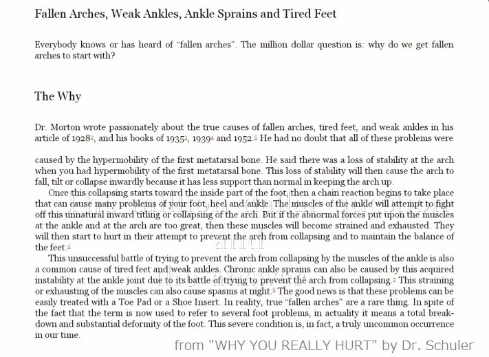博士は、『アーチの低下、疲れ易い足、弱い足首』等のトラブルは、間違いなく第一中足骨の過度な動き(過活動)により引き起こされていると沢山の著書の中で紹介している