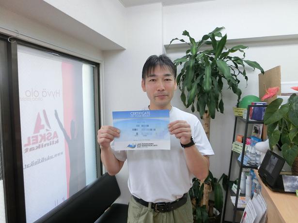 10月8日に足のバランス改善に来店された方が、10月21日にお開催された 『猪苗代湖ハーフマラソン』に参加して完走出来たそうで、証書をもって報告に来店。